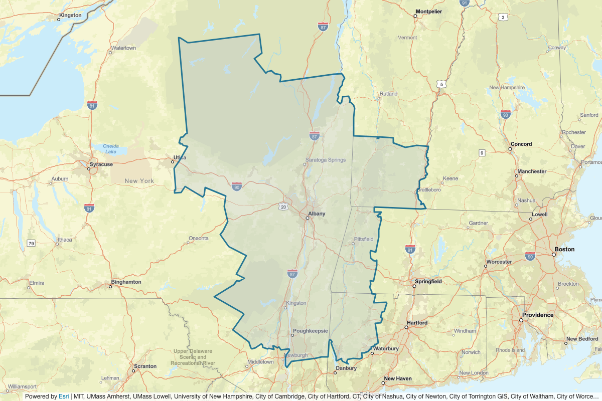 This includes Hartford, Windsor, Sullivan, Cheshire, Bennington, New Haven, Litchfield, Berkshire, Franklin, Hampshire, Washington, Addison, Rutland, Windham, Hampden, Delaware, Hamilton, Lewis, Montgomery, Orange, Otsego, Putnam, Schoharie, Sullivan, Warren, Fulton, Essex, Franklin, Oneida, Herkimer, Schenectady, Albany, Greene, Ulster, Dutchess, Columbia, Rensselaer, Saratoga, St. Lawrence, and Fairfield