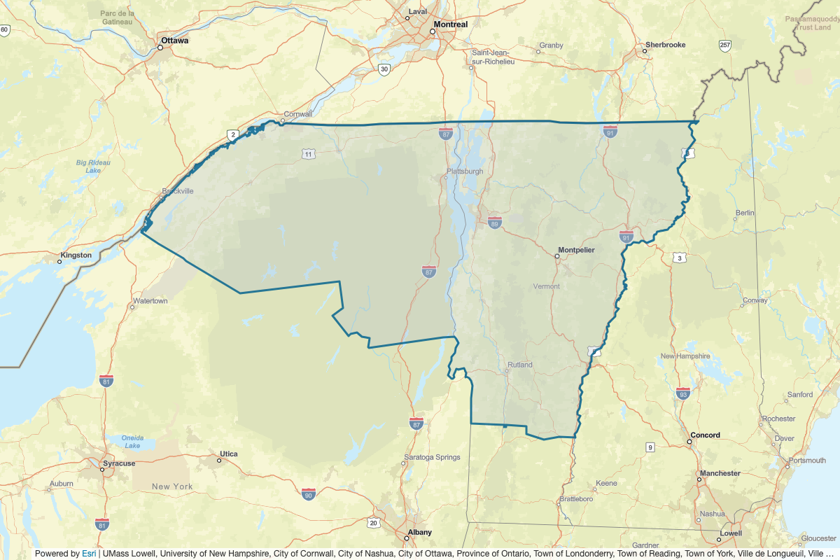 This includes Windsor, Sullivan, Lamoille, Orange, Bennington, Orleans, Washington, Grand Isle, Washington, Chittenden, Addison, Rutland, Windham, Franklin, Coos, Caledonia, Essex, Grafton, Hamilton, Lewis, Warren, Essex, Clinton, Franklin, Herkimer, St. Lawrence, and Jefferson