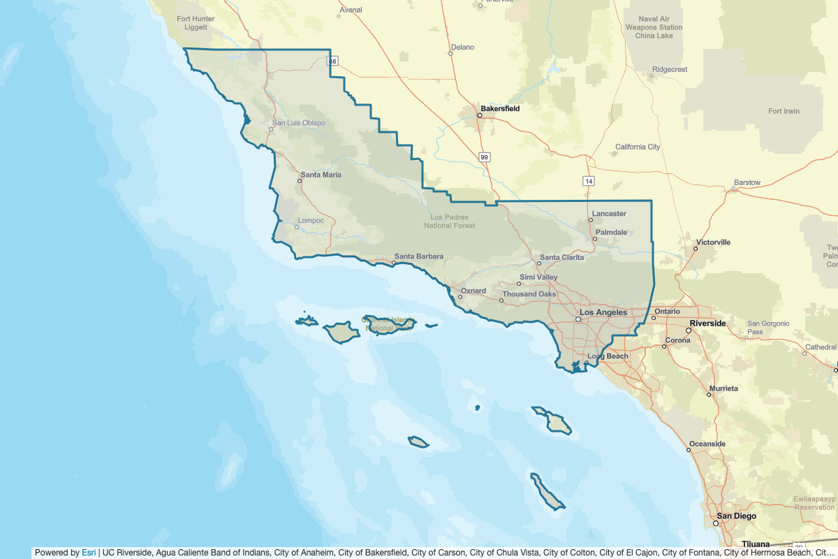 This includes Monterey, Santa Barbara, San Bernardino, Kings, Los Angeles, Ventura, Kern, San Luis Obispo, and Orange